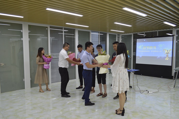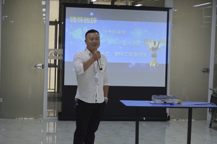 大会开始由技术部杨总、营销一区代经理、营销二区谭经理为此大会致辞。各位领导表示了对驰通未来的希望,以及对即将晋升主管的几位同事多年付出的肯定,鼓励各位在场的同学不要停下前进的步伐,努力更上一层楼。