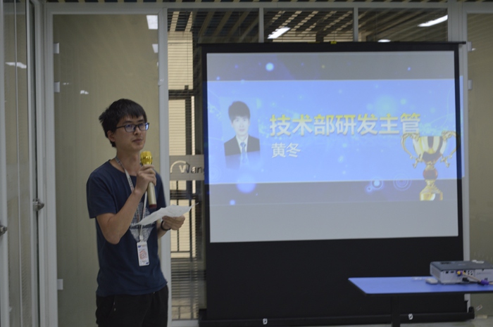 黄冬同学入职两年多来,工作认真负责,设计名榜模板30多套,参与完成的项目20多个,完善了公司平台网盟、名榜、案例、黄页等平台的升级更新。其参与项目均受客户好评。大会中黄冬同学对公司自己的肯定表示由衷的感谢。